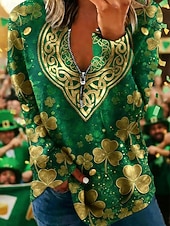 St. Patrick's Day Women's T Shirt Print Graphic Shamrock Vintage Stylish Classic Short Sleeve V Neck Regular Tops Daily Weekend Vacation Wear Green Summer Spring #18288371