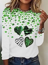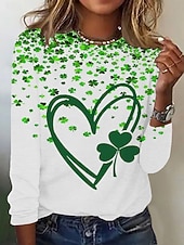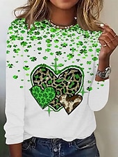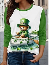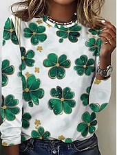 St. Patrick Women's T Shirt Letter Casual Long Sleeve Crew Neck Regular Tops Daily Print Green Spring Fall #13846693
