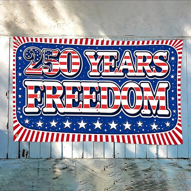 US 250th Anniversary Flag "250 Years of Freedom" Banner with Stars and Stripes Design Patriotic Commemorative Decor for Semiquincentennial Celebrations 4th of July Independence Day#19525742
