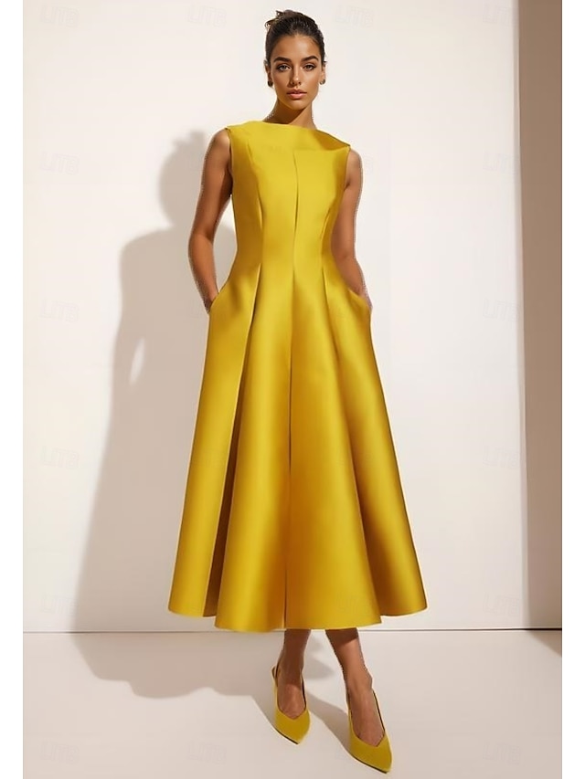 A-Line Ankle Length Cocktail Dresses Party Dresses Elegant Vintage Sleeveless Crew Neck Formal Pocket Satin with Ruched Pocket #11804241
