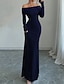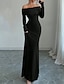 Mujer vestido largo vestido largo Vestido negro Vestido tubo Elegante Moda Moderno Fiesta Oficina Diario Ajuste regular Plano Manga Larga Hombros Caídos Negro Blanco Rosa Vino Primavera Otoño Invierno