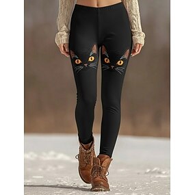 Mujer Polainas Leggings cómodos Vacaciones Casual Longitud total Alta cintura Graphic Gato Estampado Comodidad Cómodo Elástico Casual Diario Vacaciones Negro Primavera Otoño Ajustado
