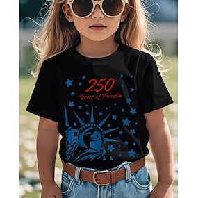 100% Algodón Niños Chica Negro Graphic Estatua de la Libertad 250 aniversario Bandera estadounidense para niños Camiseta Cuello Barco Manga Corta Vacaciones Deporte Uso Diario Activo Vacaciones Casual