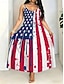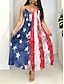 día de la independencia americana Mujer Vestido maxi Vestido de verano Vestido de una línea Vestido lencero Vacaciones Casual Playa Noche Ajuste regular Graphic Estrellas y rayas Sin Mangas Escote en