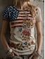 Día de la Independencia Camiseta Patriótica de Mujeres Gráfica Bandera Vintage Elegante Clásica de Manga Corta Cuello Redondo Cuello en V Tops Regulares Diarios Impresión blanco sucio Verano