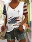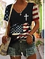 día de la independencia americana Mujer Camiseta Estampado Graphic Bandera Bandera estadounidense Vintage Elegante Clásico Manga Corta Escote en Pico Tops regulares Diario Negro Blanco Verano