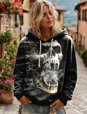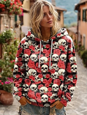 Abrigo de Mujer Ligero Calaveras Cómodo Estampado 3D Vintage Artístico Casual Calavera Casual Sin Cuello Ajuste Regular de Manga Larga Prenda Exterior Negro Blanco Rojo Primavera Otoño