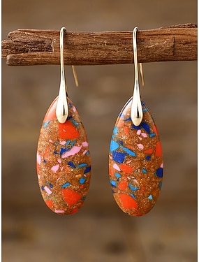 Pendientes colgantes de lágrima de piedra natural para mujer, estilo turquesa bohemio en varios colores, joyería llamativa y ligera para vacaciones de primavera y verano, playa y ropa informal de uso diario.