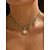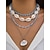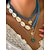 Conjunto de collar con dije de moneda y concha con cuentas doradas y azules para mujer: collares en capas de estilo bohemio playero con detalles de estrellas de mar y conchas para verano y vacaciones.