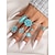Conjunto de anillos bohemios de turquesa para mujer: anillos apilables de aleación vintage con detalles de piedras preciosas para estilo occidental, festivales o uso diario.