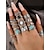 Juego de anillos de ópalo vintage para mujer, anillos ajustables chapados en plata bohemios, joyería para fiestas, bodas y uso diario.