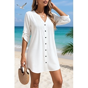 Mujer Bañadores Tapadera Vestido de Baño Traje de baño Botones Tropical Ropa de playa Plano Escote en V Manga Larga Trajes de baño