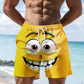 Hombre Dibujo 3D Cara de la sonrisa Ojos grandes Boxers de Natación Pantalones de Natación Pantalones de Surf Media cintura Gracioso Exterior Vacaciones Uso Diario Bolsillos laterales Forro de malla