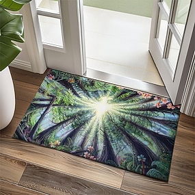 Felpudo de Luz del Sol del Bosque para Entrada Suave Antideslizante Lavable a Máquina Alfombra de Puerta de Imitación Cachemira Diseño de Dosel de Árbol de Naturaleza Secuoyas de Phoenix por Dakota