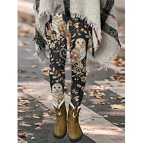 Mujer Polainas Vacaciones Vintage Moda Longitud total Alta cintura Graphic Animal Estampado Mantiene abrigado Suave Transpirable Elástico Diario Exterior Vacaciones Azul Piscina Verde Blanco Marfil