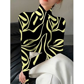 Mujer Camiseta Graphic Geometría Elegante Vintage Casual Manga Larga Cuello Alto Tops regulares Noche Azul Piscina Blanco Amarillo Rojo Otoño Invierno