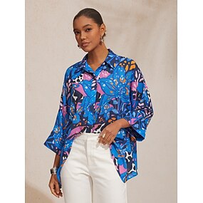 Mujer Blusa Botones Estampado Graphic Abstracto Elegante Vintage Tropical Manga Larga Cuello Camisero Tops largos Azul Piscina Morado Verano Primavera