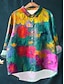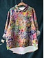 Mujer Camisa Botones Estampado Floral Elegante Vintage Casual Manga Larga Escote en Pico Tops largos Diario Trabajo Festivos Arco Iris Verano Primavera Otoño