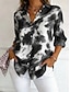 Mujer Camisa Sayo Tops de verano Botones Ombre Floral Graphic Vacaciones Vintage Diario Manga Larga Manga 3/4 Escote en Pico Tops largos Casual Diario Festivos Blanco+Negro Negro Blanco Beige Verano