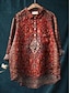 Camisa de Mujeres de Lino como Transpirable Ligera Botón Abajo Túnica Camisa Cuello de Manga Larga Gráfica Geométrica Paisley Vintage Diaria Western Diario Vacaciones Salida s Marrón Burdeos Azul