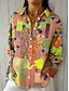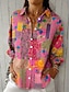 Camisa de Mujeres de Lino como Transpirable Ligera Botón Abajo Túnica Camisa Cuello de Manga Larga Gráfica Abstracta 3D Diaria Estilosa Retro Vintage Diario Vacaciones Salida s Amarillo Rosa Púrpura