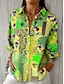 Mujer Camisa Camisa con botones Camisa casual Camisa de playa Estampado Graphic Elegante Clásico Casual Manga Larga Cuello Camisero Tops regulares Diario Festivos Noche Negro Morado Verde Trébol