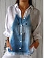 Camisa de Mujer Similar a Lino Transpirable Ligera Camisa Túnica de Botón con Cuello de Manga Larga Floral Gráfico Tops Casual Regulares Ropa de Trabajo Diaria Impresión Azul Beige Primavera Otoño