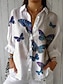 Camisa de Mujer de Lino Similar Transpirable Ligera Blusa Tunic Con Botones Cuello Manga Larga Elegante Estilosa Impresión Mariposa Diaria Blanca Amarilla Primavera Otoño