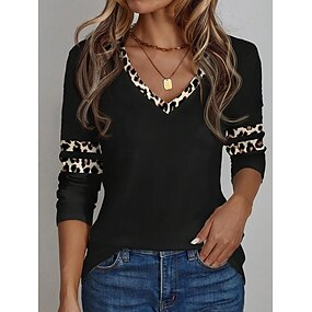 Mujer Camiseta Cortado Estampado Graphic Geométrico Abstracto Elegante Moderno Casual Manga Larga Escote en Pico Tops regulares Diario Azul Piscina Rojo Morado Verde Trébol Primavera Otoño