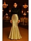 Vestido de gala sirena trompeta negra y dorada elegante vestido formal de boda hasta el suelo manga larga burbuja profundo satén elástico con fruncidos
