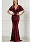 Corte Trompeta / Sirena Vestidos de noche Elegante Vestido formal Formal Boda Hasta el Suelo Manga Corta Escote en Pico Terciopelo con Plisado 2025