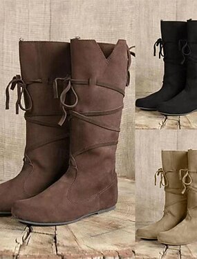 Medieval Renacimiento Zapatos Botas hasta la rodilla Botas planas de jazz Pirata Vikingo Cruzado Disfraz Mujer Celta Pirata Víspera de Todos los Santos Mascarada Fiesta y Noche LARP Feria Ren Adultos