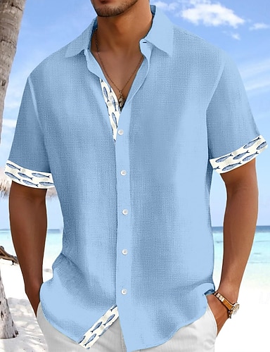 Hombre Bloque de color Camisa de lino Camisa de verano Abotonar la camisa Manga Corta Moda informal Vacaciones Festivos Ropa de playa Verano Primavera Cuello Vuelto camisas con cuello Un bolsillo