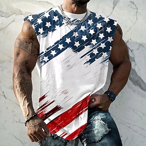 4 de julio de 2026 250º Día de los Caídos Camiseta de hombre de impresión 3D de cuello redondo con bandera de EE. UU. de manga corta diaria