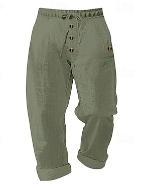Hombre Pantalones de lino Pantalones Pantalones de verano Pantalones de playa Botones Correa Cintura elástica Plano Comodidad Transpirable Longitud total Casual Diario Festivos Moda Estilo clásico
