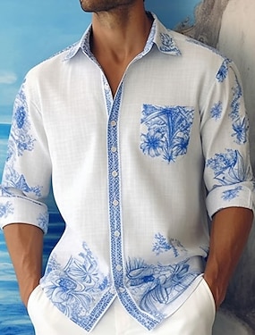 Hombre Barroco Floral intrincado Camisa Camisa de raso Camisa para Vestido Manga Larga retro de la vendimia Vacaciones Uso Diario Verano Primavera Otoño Cuello Vuelto Impresión 3D Camisas con botones