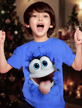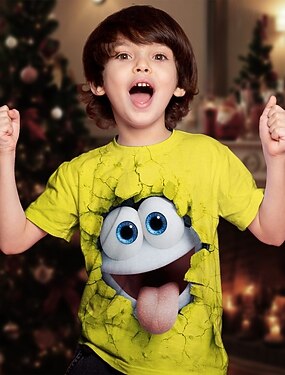 Navidad Chico 3D Graphic Los hombres de pan de jengibre Camiseta Manga Corta Verano Primavera Moda Básico Niños 4-12 años Cuello Barco Exterior Casual Diario Ajuste regular
