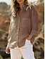 Mujer Camisa Camisa con botones Camisa casual Camisa de playa Botones Plano Elegante Clásico Moderno Manga Larga Cuello Camisero Tops regulares Diario Festivos Noche Blanco Caqui Verano Primavera