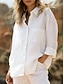 Mujer Camisa Abotonar Blusa Lino de algodón sintético Botones Plano Moderno Casual Manga Larga Cuello Camisero Tops regulares Diario Festivos Noche Negro Blanco Amarillo Rosa Verano