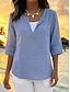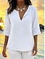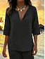 Mujer Camisa Camisas de algodón y lino Plano Diario Elegante Básico Manga 3/4 Escote en Pico Tops regulares Diario Trabajo Festivos Azul Piscina Negro Blanco Primavera Otoño