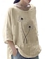 Mujer Camisa Camisas de algodón y lino Blusa Lino de algodón sintético Bordado Color sólido Básico Casual Manga 3/4 Cuello Barco Tops regulares Diario Azul Piscina Blanco Rosa Caqui Verano Primavera