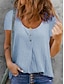 Mujer Camisa Algodón Compuesto Blusa Botones Plano Básico Moderno Manga Corta Cuello Barco Tops regulares Diario Festivos Azul Piscina Blanco Rosa Naranja Verde Trébol Verano