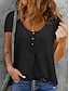Mujer Camisa Blusa Remera de algodón Retazos Botones Plano Elegante Clásico Moderno Manga Corta Escote en Pico Tops regulares Diario Festivos Noche Blanco Amarillo Morado Verde Trébol Verano Primavera