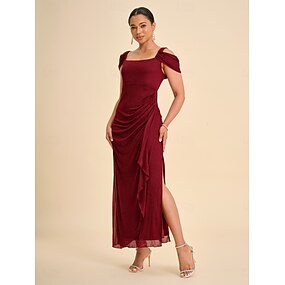 Mujer Vestido maxi Vestido tubo Elegante Fiesta Cumpleaños Color sólido Sin Mangas Escote Cuadrado Rojo tinto