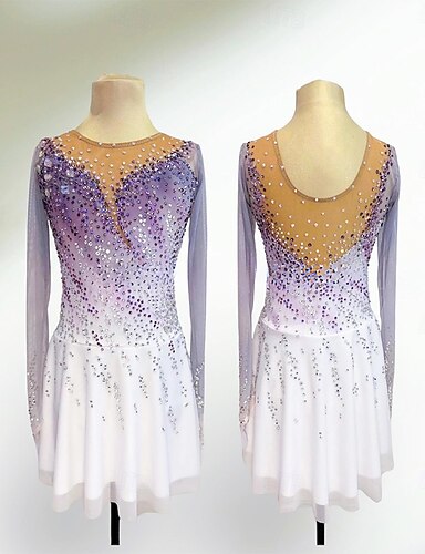 Vestido de patinaje artístico Mujer Chica Patinaje Sobre Hielo Vestidos Morado Dedo Pulgar Teñido Halo Alta elasticidad Profesional Competición Ropa de Patinaje Mantiene abrigado Cristal / Strass