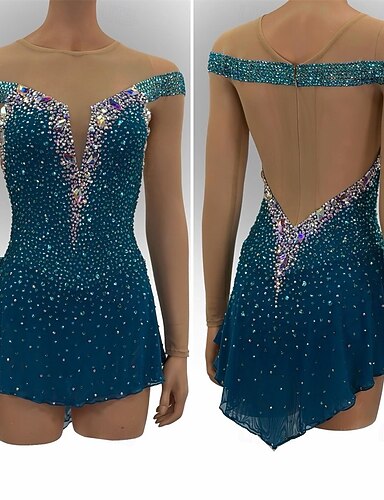 Vestido de patinaje artístico Mujer Patinaje Sobre Hielo Vestidos Azul Retazos Espalda Abierta Elástico Entrenamiento Competición Ropa de Patinaje Clásico Cristal / Strass Sin Mangas Patinaje sobre