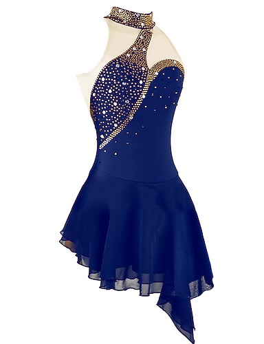 Vestido de patinaje artístico Mujer Patinaje Sobre Hielo Vestidos Azul marinero Retazos Costura asimétrica Elástico Entrenamiento Competición Ropa de Patinaje Clásico Cristal / Strass Manga Larga