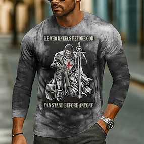 Camiseta de los Caballeros Templarios para hombres T-Shirt de manga larga camiseta de cuello redondo camiseta 3D impresa moda básica casual callejera marrón verde gris verano primavera