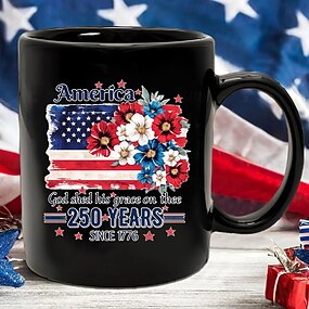 Taza de cerámica patriótica de 325 ml con motivo del 250.º aniversario de Estados Unidos, ideal como regalo para el Día de la Independencia.