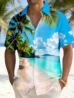 Hombre Árbol de coco Naturaleza y Paisajes Plantas tropicales Camisa Camisas hawaianas camisa hawaiana Manga Corta Hawaiano Vacaciones Festivos Verano Cuello Vuelto Impresión 3D Un bolsillo delantero